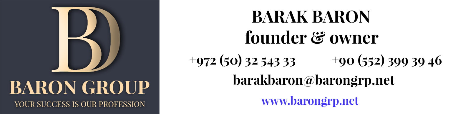 | +972 (50) 32 543 33 | information@barongrp.net | +90 (552) 399 39 46 |
